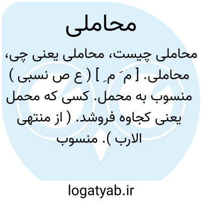 محاملی. [ م َ م ِ ] ( ع ص نسبی ) منسوب به محمل. کسی که محمل یعنی کجاوه فروشد. ( از منتهی الارب ). منسوب به محامل یعنی سازنده محملها. ( ناظم الاطباء ). این نسبت به محملها و عمل آن است. ( از انساب سمعانی ). کجاوه فروش. ( یادداشت مرحوم دهخدا ).