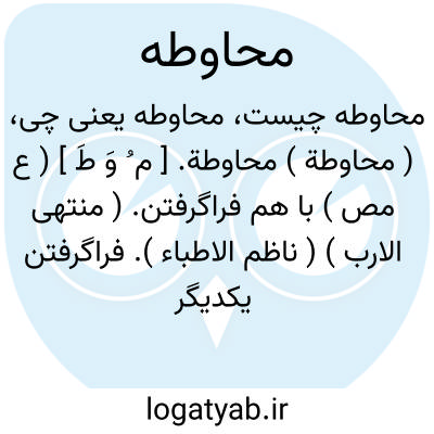 ( محاوطة ) محاوطة. [ م ُ وَ طَ ] ( ع مص ) با هم فراگرفتن. ( منتهی الارب ) ( ناظم الاطباء ). فراگرفتن یکدیگر را. || درآویختن کسی دیگری را برای مطلبی و یکی در انکار مبالغه کردن و فراگرفتن یکدیگر را. ( از منتهی الارب ) ( از ناظم الاطباء ).