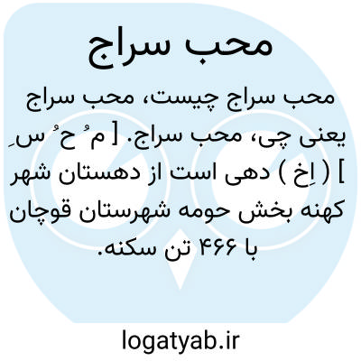 محب سراج. [ م ُ ح ُ س ِ ] ( اِخ ) دهی است از دهستان شهر کهنه بخش حومه شهرستان قوچان با 466 تن سکنه. ( از فرهنگ جغرافیایی ایران ج 9 ).