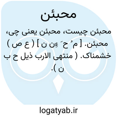 محبئن. [ م ُ ح َ ءِن ن ] ( ع ص ) خشمناک. ( منتهی الارب ذیل ح ب ن ).