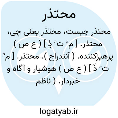 محتذر. [ م ُ ت َ ذَ ] ( ع ص ) هوشیار و آگاه و خبردار. ( ناظم الاطباء ).