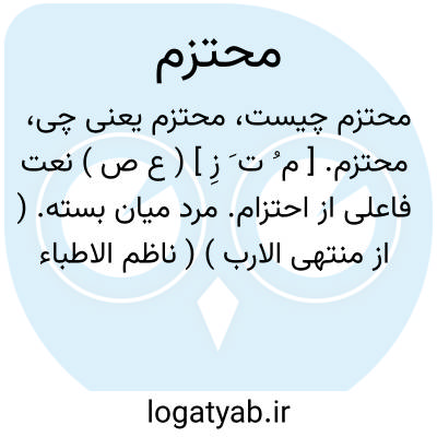 محتزم. [ م ُ ت َ زِ ] ( ع ص ) نعت فاعلی از احتزام. مرد میان بسته. ( از منتهی الارب ) ( ناظم الاطباء ). مرد میان دربسته. ( آنندراج ). || مرد لباس پوشیده. || مرد سلاح پوشیده. ( از ناظم الاطباء ). || اسب تنگ بسته شده. ( منتهی الارب ). ( ناظم الاطباء ). اسب تنگ بسته. ( آنندراج ).