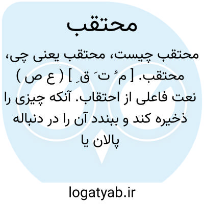 محتقب. [ م ُ ت َ ق ِ ] ( ع ص ) نعت فاعلی از احتقاب. آنکه چیزی را ذخیره کند و ببندد آن را در دنباله پالان یا چوب آن. ( از منتهی الارب ). ذخیره کننده. پس اندازکننده. ( از ناظم الاطباء ). کسی که چیزی را بردارد و حمل نماید؛ احتقب الاثْم َ؛ برداشت گناه را. ( از منتهی الارب ) ( از ناظم الاطباء ).