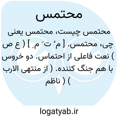 محتمس. [ م ُ ت َ م ِ ] ( ع ص ) نعت فاعلی از احتماس. دو خروس با هم جنگ کننده. ( از منتهی الارب ) ( ناظم الاطباء ). محتمش. ( آنندراج ).