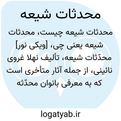 [ویکی نور] محدّثات شیعه، تألیف نهلا غروی نائینی، از جمله آثار متأخری است که به معرفی بانوان محدّثه شیعه پرداخته است. این کتاب به زبان فارسی و در یک جلد نگارش شده است.