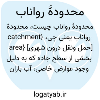 {catchment area} [حمل ونقل درون شهری] بخشی از سطح جاده که به دلیل وجود عوارض خاصی، آب باران جاری شده در آن به نقطۀ مشخصی هدایت می شود