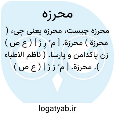 ( محرزة ) محرزة. [ م ُ رِ زَ ] ( ع ص ) زن پاکدامن و پارسا. ( ناظم الاطباء ).