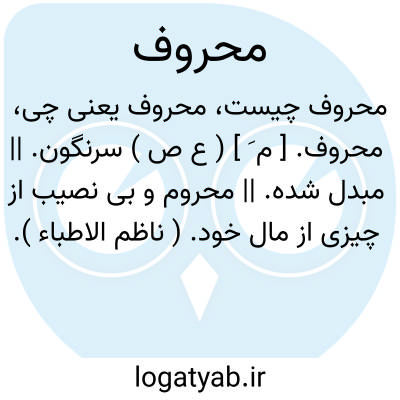 محروف. [ م َ ] ( ع ص ) سرنگون. || مبدل شده. || محروم و بی نصیب از چیزی از مال خود. ( ناظم الاطباء ).