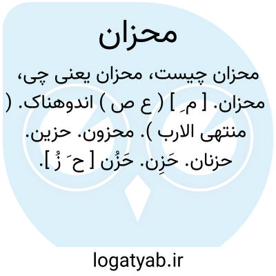 محزان. [ م ِ ] ( ع ص ) اندوهناک. ( منتهی الارب ). محزون. حزین. حزنان. حَزِن. حَزُن [ ح َ زُ ].