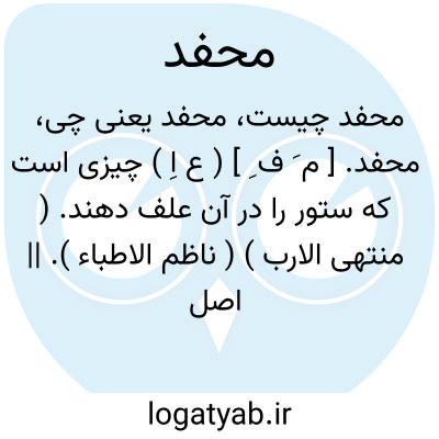 محفد. [ م ِ ف َ ] ( ع اِ ) چیزی است که ستور را در آن علف دهند. || کناره جامه. ( از منتهی الارب ) ( ناظم الاطباء ). نگار جامه. ( مهذب الاسماء ). || پیمانه و آن قدحی باشد. || زنبیل. ( منتهی الارب ) ( ناظم الاطباء ).