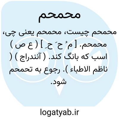 لغت نامه دهخدا محمحم. [ م ُ ح َ ح ِ ] ( ع ص ) اسب که بانگ کند. ( آنندراج ) ( ناظم الاطباء ). رجوع به تحمحم شود.
