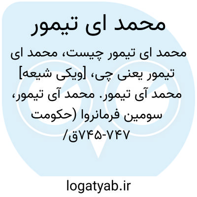 [ویکی شیعه] محمد آی تیمور. محمد آی تیمور، سومین فرمانروا (حکومت ۷۴۵-۷۴۷ق/ ۱۳۴۴-۱۳۴۶م) از سلسله شیعی سربداران که به فرمان خواجه شمس الدین به قتل رسید.