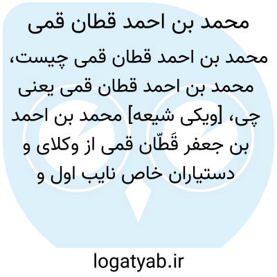 [ویکی شیعه] محمد بن احمد بن جعفر قَطّان قمی از وکلای و دستیاران خاص نایب اول و نایب دوم امام زمان در دوره غیبت صغرا. شیخ طوسی او را جزو اصحاب امام عسکری(ع) شمرده که محضر امام هادی(ع) را نیز درک کرده است و به نقل شیخ صدوق موفق به دیدار امام زمان(عج) نیز شده است.
