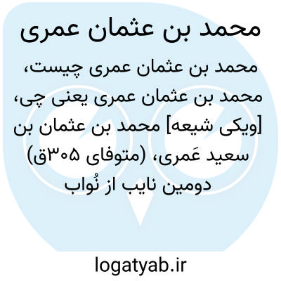 [ویکی شیعه] محمد بن عثمان بن سعید عَمری، (متوفای ۳۰۵ق) دومین نایب از نُواب اربعهٔ امام دوازدهم شیعیان پس از پدرش عثمان بن سعید است. وی ابتدا وکیل امام زمان و از دستیاران پدر بود و پس از وفات پدر به مدت چهل سال (۲۶۵-۳۰۵ق) نیابت امام زمان را در عصر غیبت صغری بر عهده داشت. با اینکه در روایت امام عسکری(ع) و نامه امام زمان(ع)، به نیابت محمد بن عثمان تصریح شده بود، برخی از وکلای سازمان وکالت ائمه در نیابت او تردید و بعضی ادعای نیابت کردند. محمد بن عثمان دستیارانی داشت که در اداره سازمان وکالت با او همکاری می کردند. او دارای تألیفاتی در فقه بود و از وی روایاتی درباره حضرت مهدی روایت شده است. ادعیه مشهوری چون سمات، افتتاح و زیارت آل یاسین نیز توسط او نقل شده است.