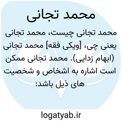 [ویکی فقه] محمد تجانی (ابهام زدایی). محمد تجانی ممکن است اشاره به اشخاص و شخصیت های ذیل باشد: • محمد بن ابوالقاسم تجانی، از شخصیت های خاندان تجانی• محمد بن ابراهیم تجانی، از شخصیت های خاندان تجانی• ابوالفضل محمد بن علی تجانی، از شخصیت های خاندان تجانی