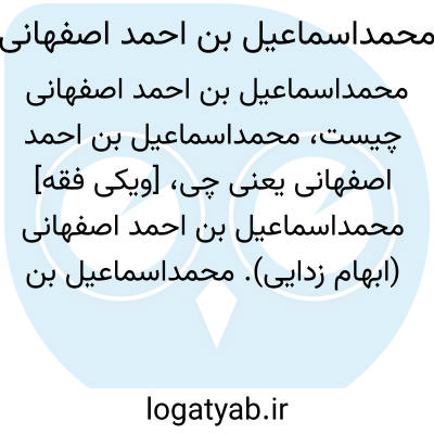 [ویکی فقه] محمداسماعیل بن احمد اصفهانی (ابهام زدایی). محمداسماعیل بن احمد اصفهانی ممکن است اشاره به اشخاص و شخصیت های ذیل باشد: • محمداسماعیل بن احمد خوانساری اصفهانی، از خوشنویسان اصفهان در قرن سیزدهم هجری در اصفهان• محمداسماعیل بن احمد خوراسکانی اصفهانی، از فضلای قرن سیزده هجری در اصفهان