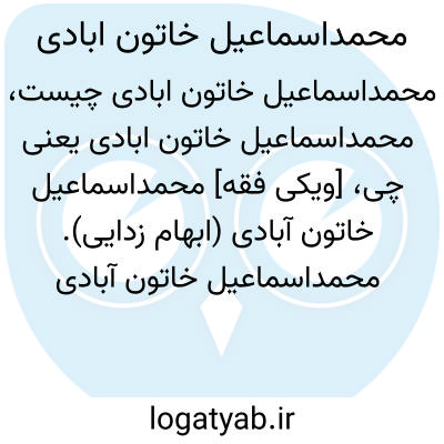 [ویکی فقه] محمداسماعیل خاتون آبادی (ابهام زدایی). محمداسماعیل خاتون آبادی ممکن است اشاره به اشخاص و شخصیت های ذیل باشد: • سیدمحمداسماعیل بن ابوالمحسن حسینی خاتون آبادی، از فضلای قرن سیزدهم هجری در اصفهان• سیدمحمداسماعیل بن محمدباقر حسینی خاتون آبادی اصفهانی، از علمای اصفهان در قرن یازده هجری• سیدمحمداسماعیل بن محمدباقر حسینی خاتون آبادی ثالث، از علما و فقهای اصفهان در قرن دوازده هجری• صابرعلی شاه سیدمحمداسماعیل حسینی خاتون آبادی اصفهانی، از مشایخ سلسله نعمت اللّهی در اصفهان