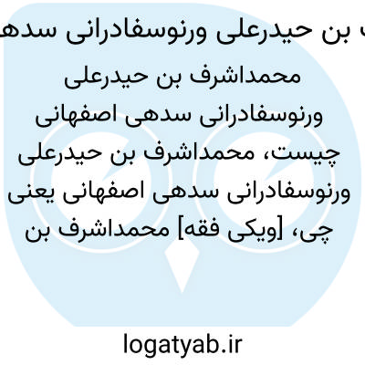 [ویکی فقه] محمداشرف بن حیدرعلی ورنوسفادرانی سدهی اصفهانی، از دانشمندان قرن دوازدهم هجری در اصفهان بوده است.