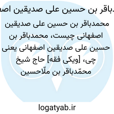 [ویکی فقه] حاج شیخ محمّدباقر بن ملّاحسین علی صدیقین، عالم فاضل متقی در قرن چهاردهم و پانزدهم هجری در اصفهان می باشد.