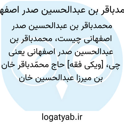 [ویکی فقه] حاج محمّدباقر خان بن میرزا عبدالحسین خان بن حاج محمّدحسین خان صدراعظم اصفهانی، مردی متبحر در علوم ادبیّه و نسخ و تحریر در اصفهان می باشد.