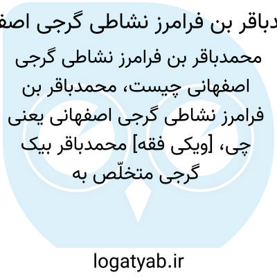 [ویکی فقه] محمدباقر بیک گرجی متخلّص به «نشاطی» فرزند فرامرز بیگ شاعر ادیب، در اصفهان می باشد.