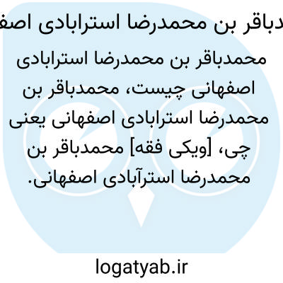 [ویکی فقه] محمدباقر بن محمدرضا استرآبادی اصفهانی. محمدباقر بن محمدرضا اصفهانی، از نویسندگان کتب در قرن یازدهم هجری در اصفهان می باشد.