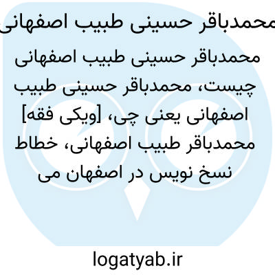 [ویکی فقه] محمدباقر طبیب اصفهانی، خطاط نسخ نویس در اصفهان می باشد.