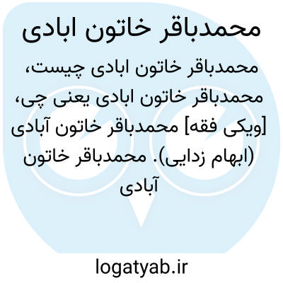 [ویکی فقه] محمدباقر خاتون آبادی (ابهام زدایی). محمدباقر خاتون آبادی ممکن است اشاره به اشخاص و شخصیت های ذیل باشد: • سیدمحمدباقر بن محمداسماعیل خاتون آبادی اصفهانی، عالم فاضل محدّث، از دانشمندان قرن یازدهم هجری اصفهان• سیدمحمدباقر حسینی خاتون آبادی اصفهانی، عالم فاضل فقیه محقق و ادیب مدقّق، از علمای قرن دوازدهم هجری اصفهان• سیدمحمدباقر بن محمدصالح خاتون آبادی اصفهانی، از فضلاء و محقّقین اصفهان در قرن سیزدهم هجری• سیدمحمدباقر بن محمدمهدی حسینی خاتون آبادی اصفهانی، عالم فاضل جلیل قرن سیزدهم هجری در اصفهان• سیدمحمدباقر بن محمدهادی پاقلعه ای خاتون آبادی، عارف سالک، از عرفای سلسله نعمت اللهی در اصفهان