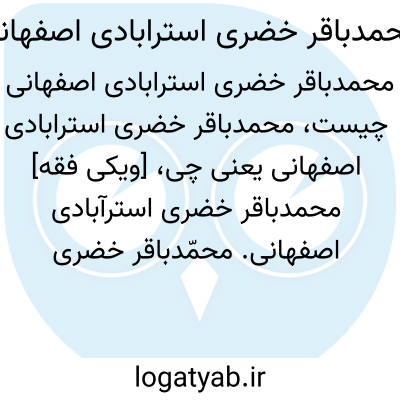 [ویکی فقه] محمدباقر خضری استرآبادی اصفهانی. محمّدباقر خضری استرآبادی، از فضلاء قرن یازدهم هجری اصفهان می باشد.
