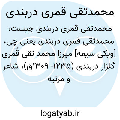 [ویکی شیعه] میرزا محمد تقی قُمری گلزار دربندی (۱۲۳۵- ۱۳۰۹ق)، شاعر و مرثیه سرای اهل دربند در جمهوری خودمختار داغستان کنونی.