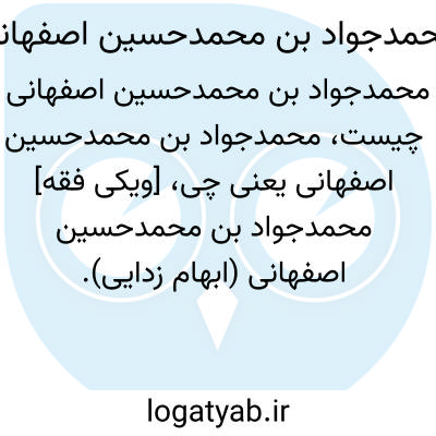 [ویکی فقه] محمدجواد بن محمدحسین اصفهانی (ابهام زدایی). محمدجواد بن محمدحسین اصفهانی ممکن است اشاره به اشخاص و شخصیت های ذیل باشد: • محمدجواد بن محمدحسین بیدآبادی سرجوئی اصفهانی، عالم ربانی و عارف صمدانی از مشایخ سلسله ذهبیه در اصفهان• سیدمحمدجواد بن سیدمحمدحسین میرمحمدصادقی اصفهانی، عالم فاضل در اصفهان ...