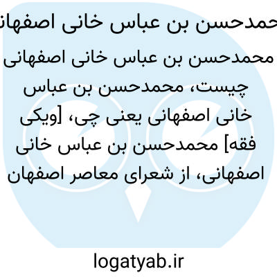 [ویکی فقه] محمدحسن بن عباس خانی اصفهانی، از شعرای معاصر اصفهان می باشد.