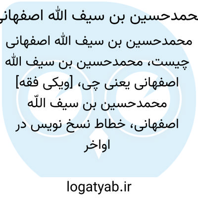 [ویکی فقه] محمدحسین بن سیف اللّه اصفهانی، خطاط نسخ نویس در اواخر قرن یازدهم و اوایل قرن دوازهم هجری در اصفهان می باشد.