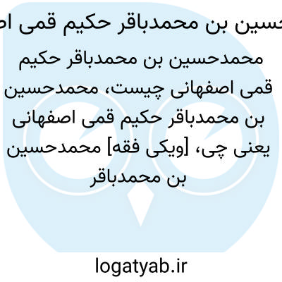 [ویکی فقه] محمدحسین بن محمدباقر حکیم قمی اصفهانی، طبیب و ادیب دانشمند در عصر شاه عباس دوم و شاه سلیمان صفوی بوده است.