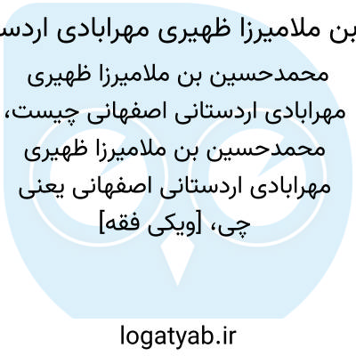 [ویکی فقه] محمدحسین بن ملامیرزا ظهیری مهرآبادی اردستانی اصفهانی. محمدحسین بن ملامیرزا ظهیری مهرآبادی اردستانی اصفهانی، عالم فاضل متّقی، از علمای قرن چهاردهم هجری اصفهان می باشد.
