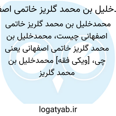 [ویکی فقه] محمدخلیل بن محمد گلریز خاتمی اصفهانی، از هنرمندان معاصر اصفهان می باشد.