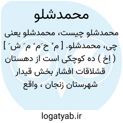 محمدشلو. [ م ُ ح َم ْ م َ ش َ ] ( اِخ ) ده کوچکی است از دهستان قشلاقات افشار بخش قیدار شهرستان زنجان، واقع در 8500 گزی باختری قیدار با 64 تن سکنه. ( از فرهنگ جغرافیایی ایران ج 4 ).