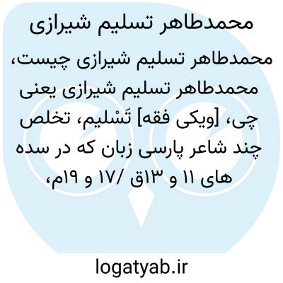 [ویکی فقه] تَسْلیم، تخلص چند شاعر پارسی زبان که در سده های ۱۱ و ۱۳ق /۱۷ و ۱۹م، در ایران و هند می زیستند. یکی از شعرایی که به تسلیم تخلص یافته محمدطاهر تسلیم شیرازی است.