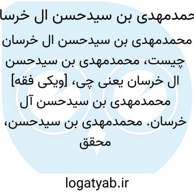[ویکی فقه] محمدمهدی بن سیدحسن آل خرسان. محمدمهدی بن سیدحسن، محقق و مؤلف، یکی از شخصیت های آل خرسان می باشد؛ آل خِرسان، خاندانی از عالمان و ادیبان شیعی نجف است.