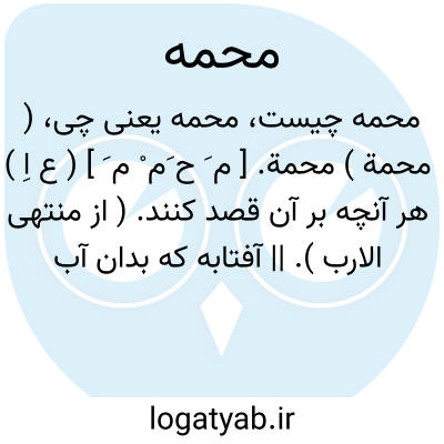 ( محمة ) محمة. [ م َ ح َم ْ م َ ] ( ع اِ ) هر آنچه بر آن قصد کنند. ( از منتهی الارب ). || آفتابه که بدان آب گرم کنند. ( مهذب الاسماء ). ظرفی که بدان آب گرم کنند. آفتابه. کتری. || سبب تب. ( منتهی الارب ). || ( ص ) ارض محمة؛ زمین با تب یا زمین بسیار تب. زمینی تب خیز. مُحِمَّة. ( منتهی الارب ).