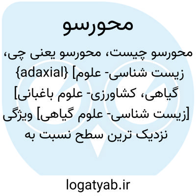 {adaxial} [زیست شناسی- علوم گیاهی، کشاورزی- علوم باغبانی] [زیست شناسی- علوم گیاهی] ویژگی نزدیک ترین سطح نسبت به محور یا ویژگی سطح بالاتر یا داخلی تر هر اندام نسبت به محور متـ. شکمی ventral [کشاورزی- علوم باغبانی] ویژگی اندامی در گیاه که نوک آن به طرف محور یا...