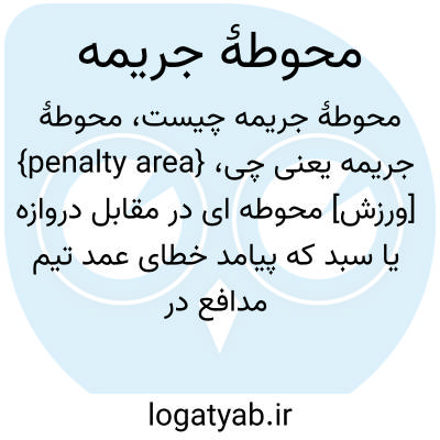 {penalty area} [ورزش] محوطه ای در مقابل دروازه یا سبد که پیامد خطای عمد تیم مدافع در آن اعلام جریمۀ ضربه یا پرتاب مستقیم از سوی داور است