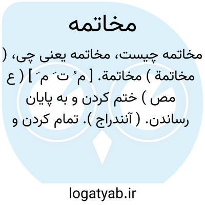 ( مخاتمة ) مخاتمة. [ م ُ ت َ م َ ] ( ع مص ) ختم کردن و به پایان رساندن. ( آنندراج ). تمام کردن و انجام دادن و به انجام رسانیدن. ( ناظم الاطباء ).