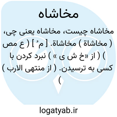 ( مخاشاة ) مخاشاة. [ م ُ ] ( ع مص ) ( از «خ ش ی » ) نبرد کردن با کسی به ترسیدن. ( از منتهی الارب ) ( آنندراج ) ( ناظم الاطباء ). با کسی نبرد کردن. ( از تاج المصادر بیهقی ). یقال خاشانی فخشیته. ( منتهی الارب ) ( ناظم الاطباء ). || ترک کردن کسی را. ( از ذیل اقرب الموارد ): و خاشیت فلاناً؛ ای تارکته. ( منتهی الارب ) ( ناظم الاطباء ).