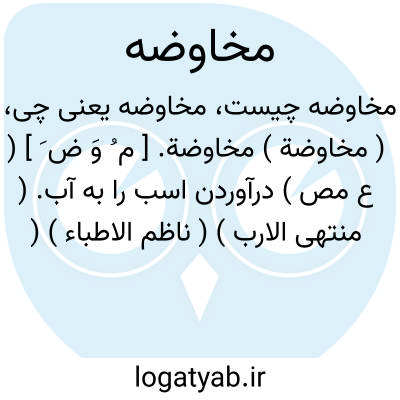 لغت نامه دهخدا ( مخاوضة ) مخاوضة. [ م ُ وَ ض َ ] ( ع مص ) درآوردن اسب را به آب. ( منتهی الارب ) ( ناظم الاطباء ) ( از اقرب الموارد ).