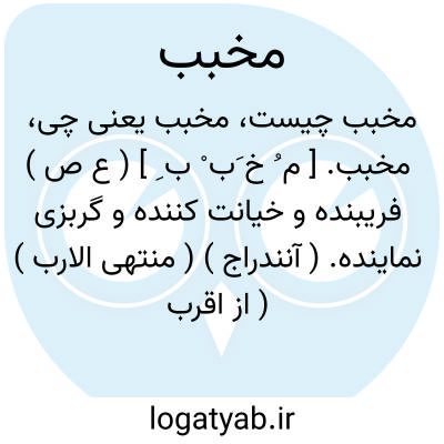 مخبب. [ م ُ خ َب ْ ب ِ ] ( ع ص ) فریبنده و خیانت کننده و گربزی نماینده. ( آنندراج ) ( منتهی الارب ) ( از اقرب الموارد ) ( از محیط المحیط ). فریبنده و گمراه کننده. ( ناظم الاطباء ).
