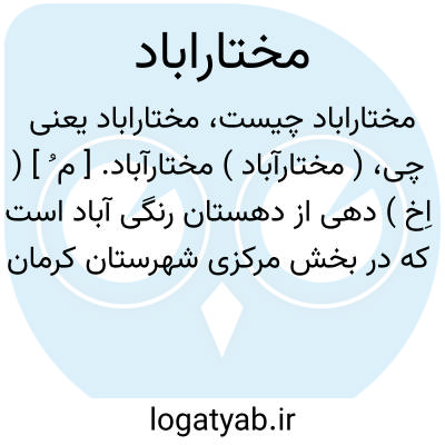 ( مختارآباد ) مختارآباد. [ م ُ ] ( اِخ ) دهی از دهستان رنگی آباد است که در بخش مرکزی شهرستان کرمان واقع است و 150 تن سکنه دارد. ( از فرهنگ جغرافیایی ایران ج 8 ).