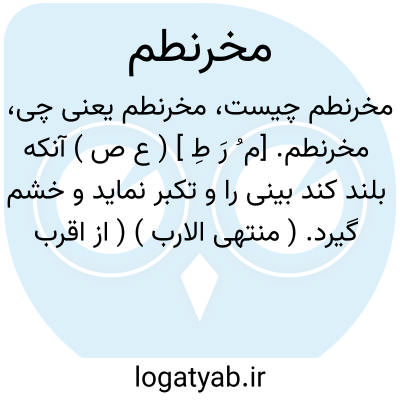 مخرنطم. [م ُ رَ طِ ] ( ع ص ) آنکه بلند کند بینی را و تکبر نماید و خشم گیرد. ( منتهی الارب ) ( از اقرب الموارد ) ( آنندراج ). متکبری که بینی خود را بلند کند و خشم گیرد.