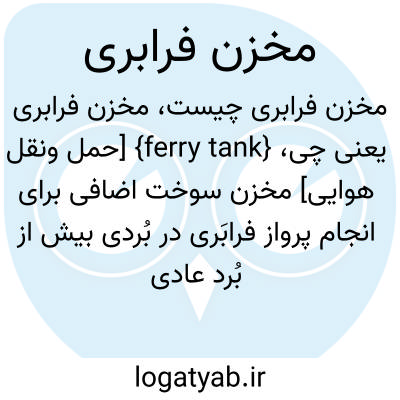 {ferry tank} [حمل ونقل هوایی] مخزن سوخت اضافی برای انجام پرواز فرابَری در بُردی بیش از بُرد عادی هواگَرد