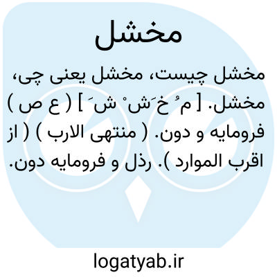 مخشل. [ م ُ خ َش ْ ش َ ] ( ع ص ) فرومایه و دون. ( منتهی الارب ) ( از اقرب الموارد ). رذل و فرومایه دون. ( ناظم الاطباء ). || رجل مخشل؛ مرد آراسته به زیور. ( منتهی الارب ) ( از اقرب الموارد ) ( ناظم الاطباء ).